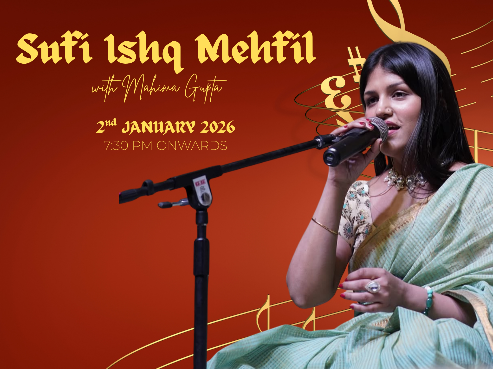 Enter a soulful Sufi Ishq Mehfil where Mahima’s voice carries devotion, longing, and surrender, guiding listeners through Sufi, devotional, and folk traditions into Ishq experience.